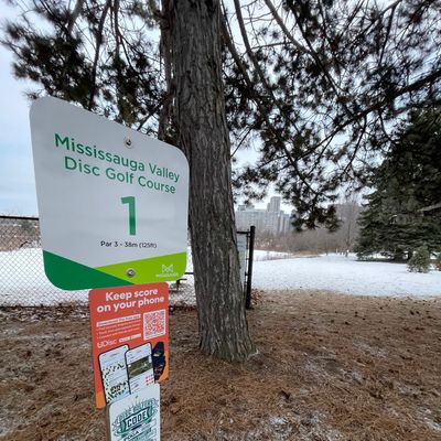 Tucked into the tranquil greenspace of Mississauga Valley Park, this 5-hole disc golf course is ideal for newcomers and casual players. The layout features mostly flat terrain with fairly open fairways, making it easy to navigate without feeling overwhelming. Distances between tee pads and baskets are perfect for learning basic throws and building confidence. Nearby amenities like the community centre, baseball diamonds, playgrounds, splash pad and picnic areas give players an opportunity to combine a round of disc golf with a peaceful afternoon outdoors. The course is free to play. Just bring your own discs and enjoy a casual round in a lovely park setting.