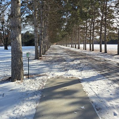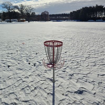 Fun 9 basket layout at the camp. Long/short tees that make the holes very different. Mix of long open holes and technocal wooded shots. Nice baskets, tees & signs. I had no issues on a snow round. Called the office and got OK to play no issues.
